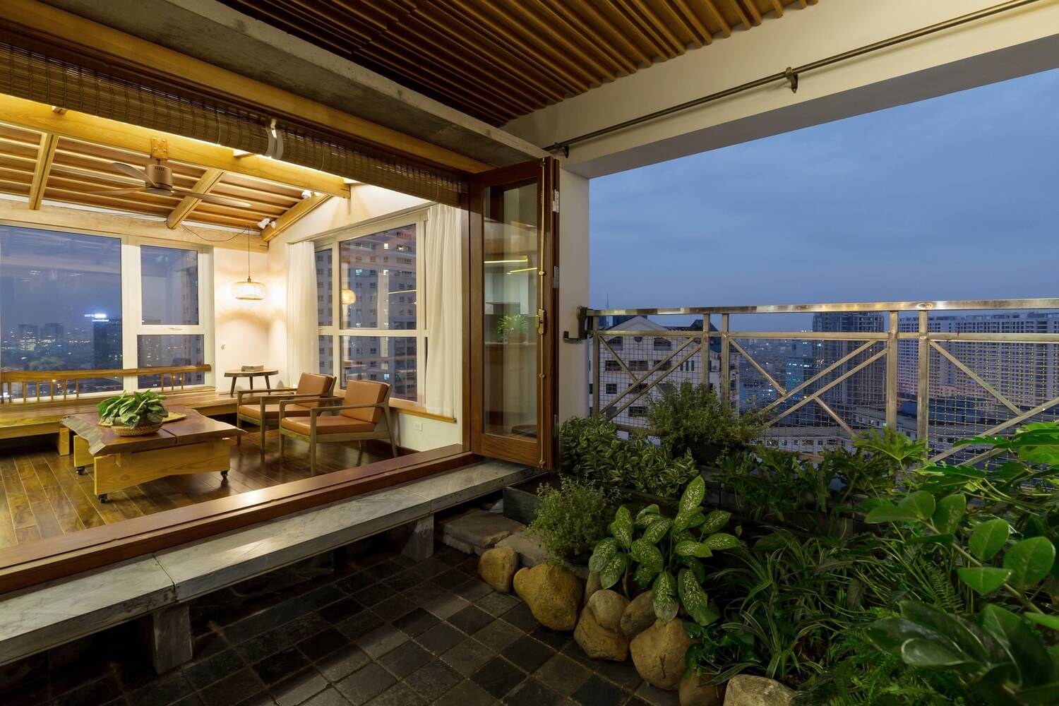 Đặc biệt, khu vực ban công được thiết kế đậm chất vườn tược như: cây cảnh, hồ nước,... Không gian của Apartment 2606 khiến người nhìn đánh mất cảm giác bản thân đang ở trong căn phòng chung cư cao tầng. Họ sẽ cảm thấy như được hòa quyện vào thiên nhiên, không gian sống của căn nhà ngoại ô.